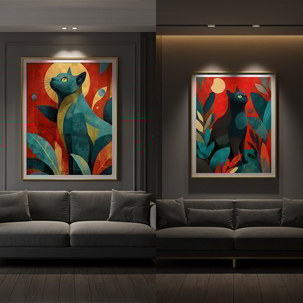 Bring character, calm, and artistic depth into your space with Celestial Cat, a modern abstract cat illustration designed to elevate both minimalist and expressive interiors.